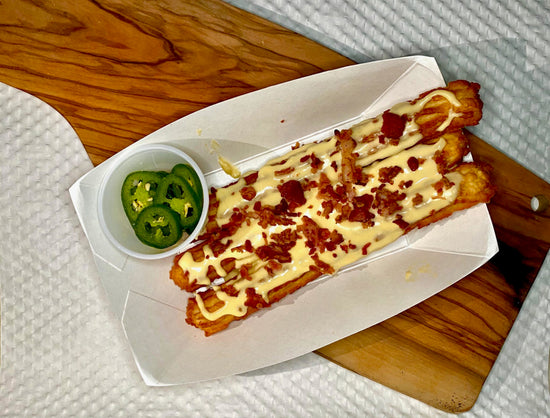 Savory ChurrosThree (3) Churros loaded with cheese and bacon served with sliced jalapeños on side.